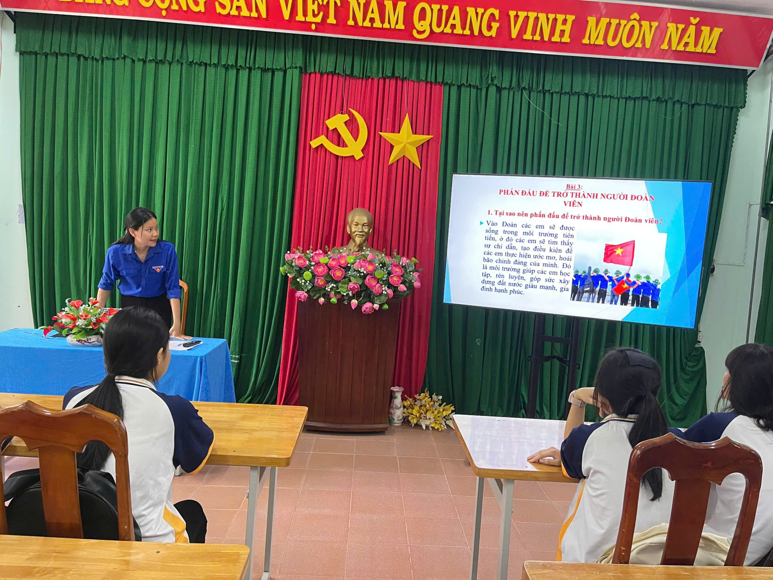 Buổi học diễn ra trong không khí nghiêm túc, sôi nổi và đầy nhiệt huyết. Các em học sinh đã được tìm hiểu về lịch sử hình thành, truyền thống vẻ vang của Đoàn Thanh niên Cộng sản Hồ Chí Minh, quyền và nhiệm vụ của người đoàn viên, cũng như những điều kiện để được đứng vào hàng ngũ của Đoàn.