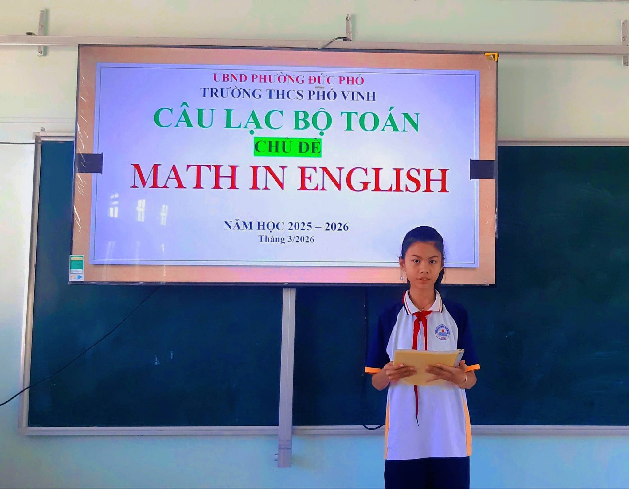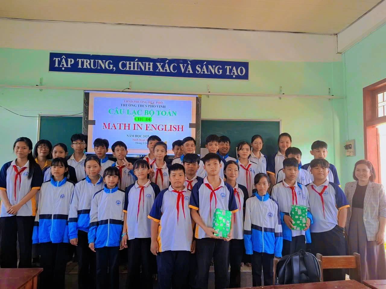 Hưởng ứng phong trào nâng cao năng lực ngoại ngữ và đổi mới phương pháp học tập, vào chiều ngày 26/3 vừa qua, Câu lạc bộ Toán học trường THCS Phổ Vinh đã tổ chức buổi sinh hoạt chuyên đề đặc biệt với chủ đề: “Math in English”.