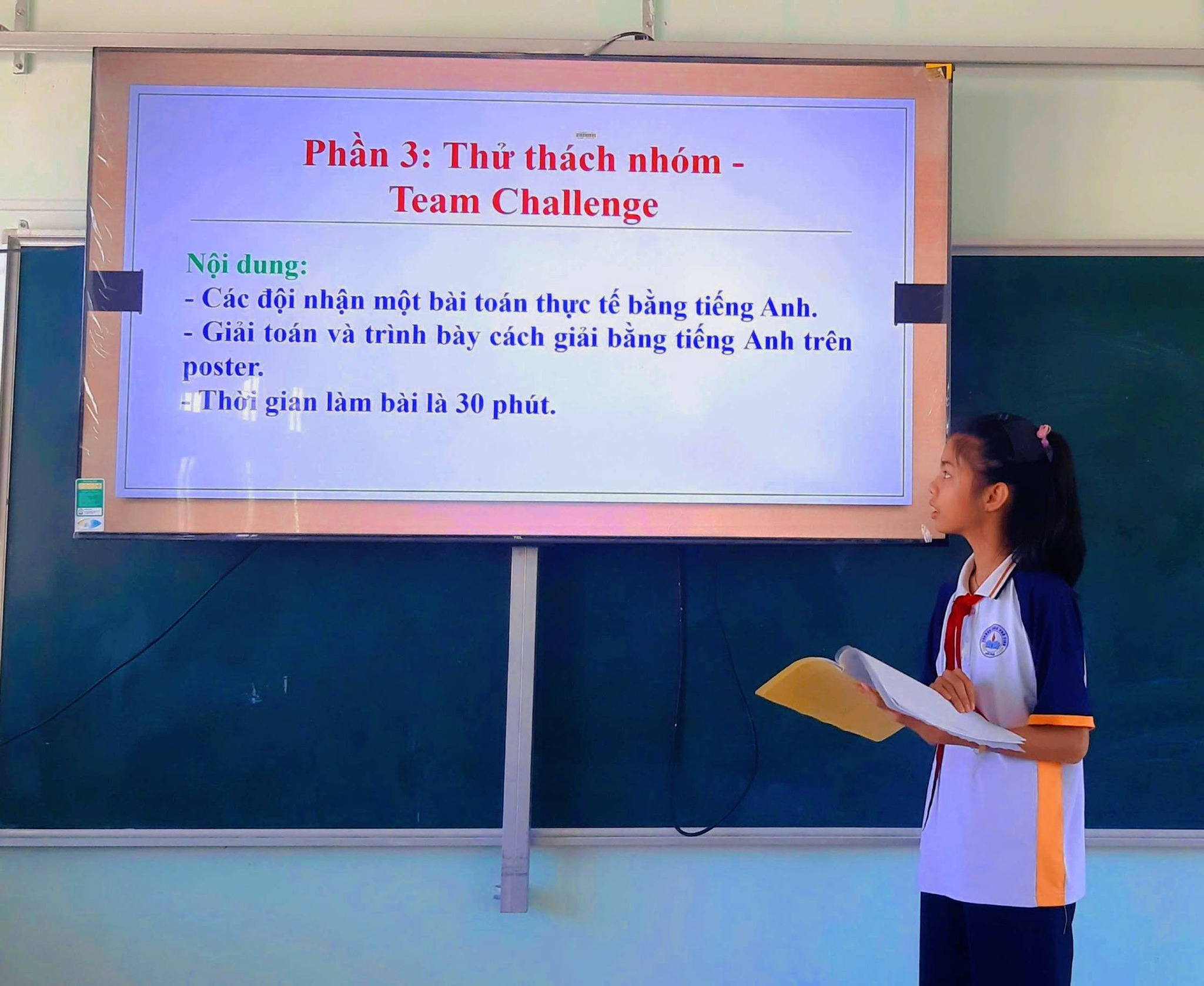 Đây là phần thi bùng nổ sức mạnh tập thể. Các nhóm được giao một bài toán tư duy thực tế (Problem-solving), được trình bày bằng tiếng Anh. Các thành viên phải cùng nhau thảo luận, tìm ra hướng giải, lập luận các bước bằng tiếng Anh và… đặc biệt nhất là: tạo ra một Poster sinh động để trình bày lại bài toán và lời giải đó.